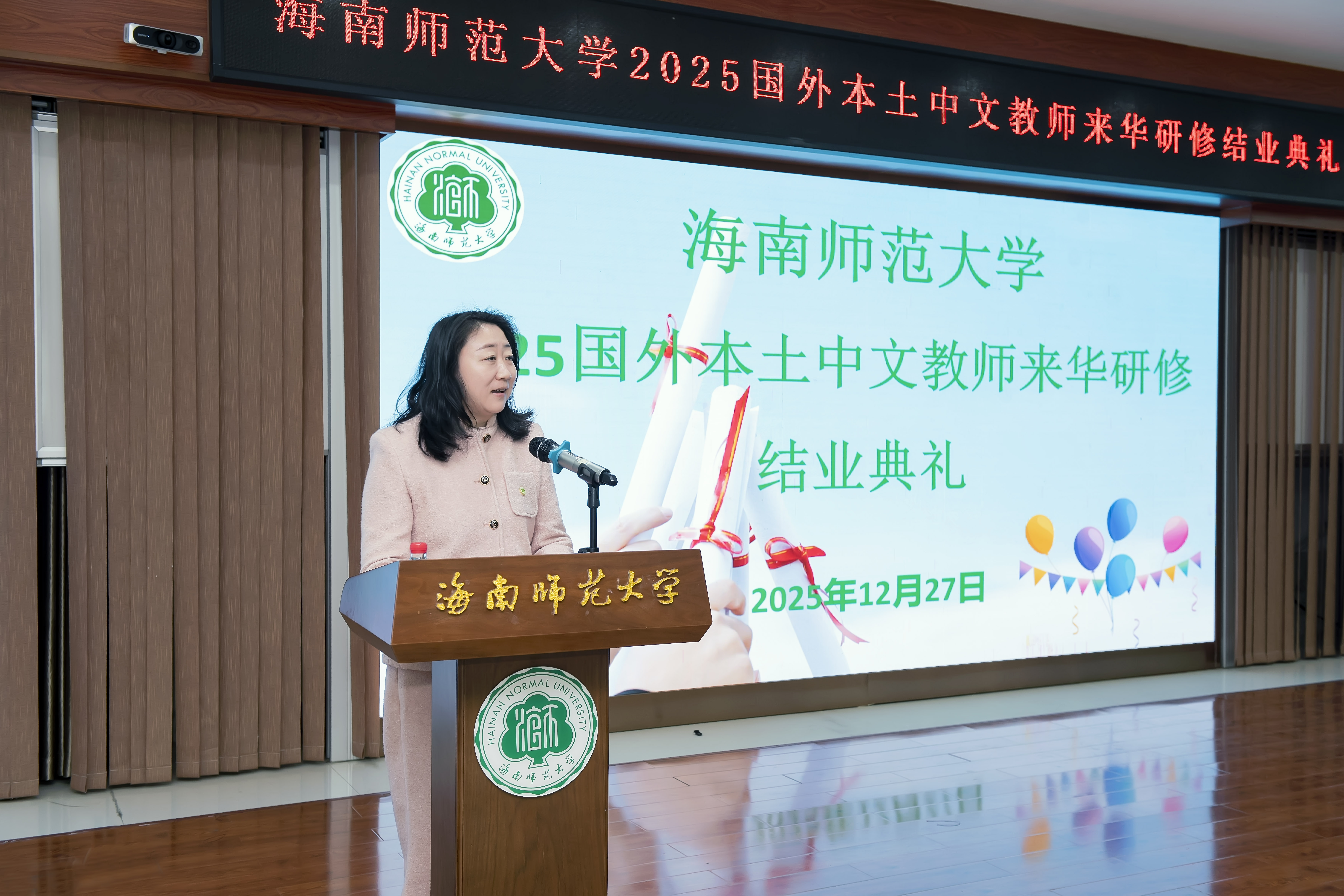2025年12月27日下午,“星空免费版app2025国外本土中文教师来华研修”结业典礼在国际教育学院楼201报告厅举行。本次结业典礼由国际教育学院招生办公室副主任周艳梅主持,出席典礼的有国际教育学院书记吴辰、院长耿娟、副书记符星、副院长牟鸿月等领导和相关老师及全体学员。